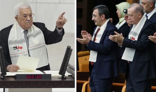 Filistin Devlet Başkanı Mahmud Abbas, Türkiye Büyük Millet Meclisi'nde şeref konuğu olarak milletvekillerine seslendi. Buradan İsrail'in Gazze'deki katliamıyla ilgili tüm dünyaya mesajlar veren Abbas'ın kullandığı bazı ifadeler Cumhurbaşkanı Erdoğan tarafından da ayakta alkışlandı.