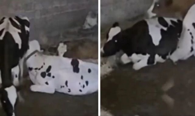 Bir çiftlikte güvenlik kamerasına yansıyan görüntü akıllara durgunluk verdi. Yerde yatan inek, yanındaki ineğin bağına takılıp üzerine düşmesi sonucu boğularak telef oldu. Video kaydını izleyenler "Sinirlerim bozuldu", "Gerim gerim gerildim ,nefesim kesildi", "Keşke görmeseydim" şeklinde yorumlar aldı.