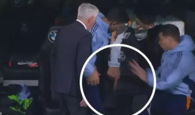 Güler, elindeki suyun bir kısmını yanlışlıkla teknik direktörü Carlo Ancelotti'nin oturduğu koltuğa döktü. Koltuğa oturmak için yönelen İtalyan hoca, ekibi ve Arda'nın uyarması üzerine geri döndü.