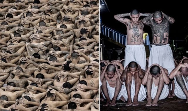 Orta Amerika ülkesi El Salvador'da hükümet kaynakları, 40 bin mahkumun kaldığı Tecoluca'daki terörle Mücadele Merkezi ismiyle bilinen cezaevinin yeni fotoğraflarını yayınladı. Çok sayıda suç örgütü liderinin kaldığı cezaevinden servis edilen karelerde çok sayıda gömleksiz, dövmeli ve saçları tıraşlı mahkumun elleri arkadan bağlı şekilde otobüse doldurulduğu diğerlerinin de yerlere oturtularak bekletildiği görülüyor.