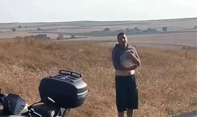 YAKALANACAĞINI ANLAYINCA BIÇAĞI KARNINA DAYADITekirdağ'ın Süleymanpaşa ilçesinde eşi Elif Dim'i darp ederek öldüren Hasan Dim'in, jandarma ekipleri tarafından yakalandığı anlara ilişkin yeni görüntüler ortaya çıktı. Süleymanpaşa ilçesine bağlı Karacakılavuz Mahallesi yolunda kıstırılan Hasan Dim, jandarmayı görünce elindeki bıçağı karnına dayadı. O sırada jandarma ekipleri Hasan Dim'e "Yapma dur, çocukların var, herkes seni merak ediyor" diyerek ikna etmeye çalıştı.ÖLDÜRDÜĞÜ KARISI İÇİN 'EN DEĞER VERDİĞİM ŞEY' DEDİHasan Dim ise karnına bıçağı dayamış şekilde, "Ben hayatımdaki en değer verdiğim şeyi, istemeden oldu" derken jandarma tarafından ikna edilerek etkisiz hale getirildi. O anlar saniye saniye kayıt altına alındı.