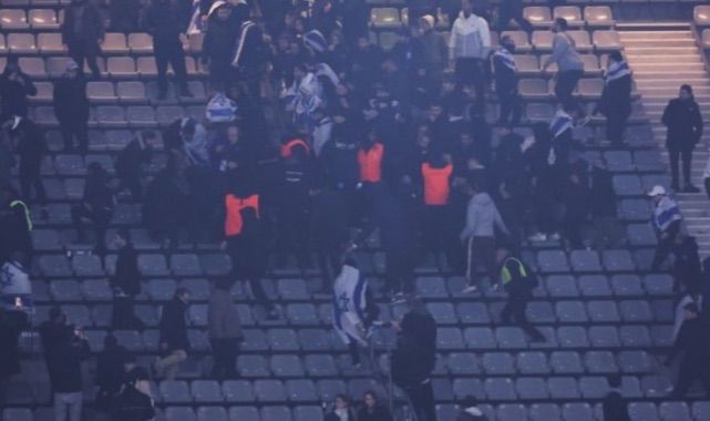 UEFA Uluslar Ligi A Grubu'nda yapılan Fransa-İsrail takımları arasındaki futbol maçında gergin anlar yaşandı.Fransa'nın başkenti Paris'te oynanan, İsrail milli marşının ıslıklandığı maç sırasında İsrail taraftarları kavga çıkardı ve bazı Fransız taraftarlarını darp etti.Aşırı solcu Boyun Eğmeyen Fransa (LFI) Partisi Milletvekili Raphael Arnault, X hesabından yaptığı paylaşımda, İsrailli aşırıcı taraftarın maça kavga etmek için geldiklerini önden duyurduğunu belirtti.Arnault, statta çok sayıda linç olayı yaşandığını ifade ederek, aşırı sağcı İsrail tarafların önlemek için neler yapıldığını sordu.LFI Parti Koordinatörü Manuel Bompard, İsrailli taraftarların Fransız taraftarları darp ettiği anlara ait görüntüleri paylaşarak, bunun "utanç verici" olduğunu ifade etti.Emmanuel Hoarau isimli öğrenci ve gazeteci, X hesabından, maç sırasında tribünlerden Filistin bayrağını açtığı ana ait fotoğrafı paylaştı.Hoarau, aynı sosyal medyada yaptığı açıklamada, "Hiçbir özgürlük kısıtlayıcı önlem, Gazze'de devam eden katliamı unutturamaz." ifadelerini kullanarak, Fransa İçişleri Bakanı Bruno Retailleau'nun X hesabını etiketledi.Fransa Cumhurbaşkanı Emmanuel Macron, maç öncesi Fransız basınına yaptığı açıklamada, nerede olursa olsun Yahudi karşıtlığına boyun eğmeyeceklerini, şiddetin ve korkutmanın Fransa'da galip gelmeyeceğini belirtti.Fransa’da Filistin destekçilerinin, Saint-Denis'te yer alan Stade de France'taki Fransa-İsrail maçına yönelik tepkileri haftalardır devam ediyor.Filistin destekçileri, son haftalarda yaptıkları eylemler kapsamında, maçın iptal edilmesini, Fransız taraftarların maçı boykot etmesini ve Fransa milli takımında forma giyen futbolcuların karşılaşmada oynamayı reddetmesi çağrısında bulunmuştu.Fransız yetkililer, Hollanda'nın başkenti Amsterdam'da UEFA Avrupa Ligi'nde 7 Kasım'da yapılan Ajax-Maccabi Tel Aviv maçı öncesinde ve sırasında yaşananların ardından, maç kapsamında yoğun güvenlik tedbirleri alma yoluna gitti.Maçın oynandığı stadın etrafında güvenlik alanı oluşturan polis, bu alana yaklaşanları kontrole tabi tuttu.Taraftarların stada çanta ve şişeyle gelmemeleri talep edilirken, yerel saatle 15.30'da stadın çevresindeki dükkanlar kepenk kapattı.Başkent Paris'te ve Saint-Denis'te 4 bin polis ve jandarma yanı sıra 1400 stat çalışanı görevlendirildi. Bu maç için görevlendirilen güvenlik gücü sayısı, aynı statta 80 bin taraftarla oynanan yüksek gerilimli Paris Saint Germain (PSG) ve Olimpik Marsilya maçlarının iki katını oluşturdu.Öte yandan, taraftarların, maç sahasına yakın tribünlerde oturması ve stada Filistin bayrakları getirmesi yasaklandı.