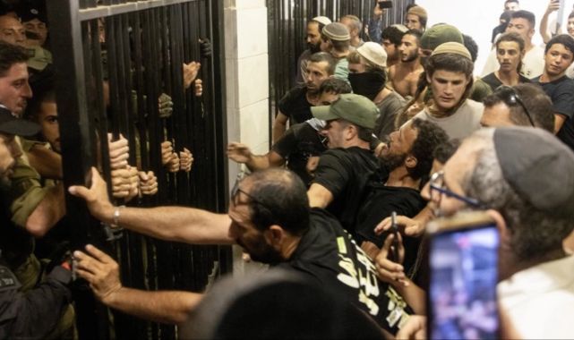 7 Ekim 2023'ten bu yana Gazze'yi kan gölüne çevirip on binlerce sivili katleden İsrail'de büyük bir kriz patlak verdi. Ordunun, Filistinli tutukluya işkence yapmakla suçladığı 9 askeri gözaltına alması üzerine İsrail'deki aşırı sağcı protestocular güvenlik güçleriyle çatışarak askeri üsse girdi. Başbakan Netanyahu'nun sert tepkisi ve sakinlik çağrısına rağmen eylemin devam ettiği aktarıldı.