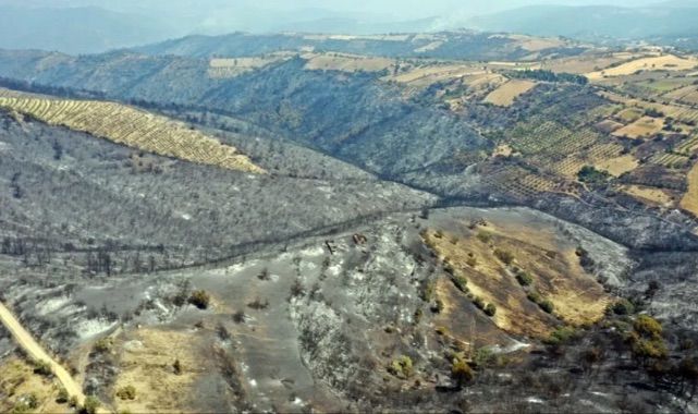 Ekiplerin zamanla yarışı sürerken bölgede havadan çekilen görüntüler durumun vahametini gözler önüne serdi. Üç gün önce yemyeşil olan alanların küle döndüğü görüldü.